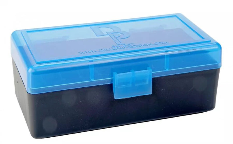 Praktiske og robuste ammo-bokser, med plass til 50 patroner. Dillon ammo bokser er ekstremt holdbare og designet for å holde livet ut. Lokket er hengslet med klaff lås som hindrer at boksen åpner seg under transport eller fall. Patroner lagres med kulen opp.