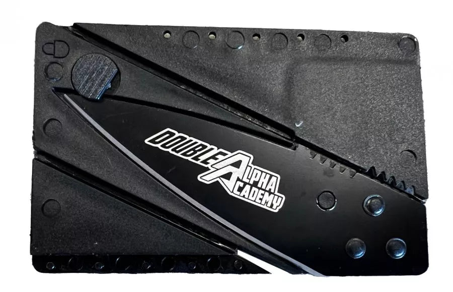 - A flat folding steel knife with plastic handle, with DAA logo laser engraved.