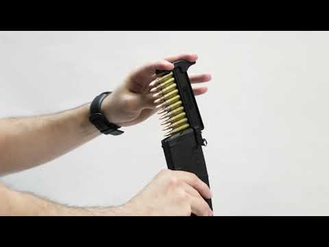 It can be used to load ammo packed in stripper clips (12 seconds to load 30 rounds) or it can be used to load individual rounds(40 seconds to load 30 rounds).