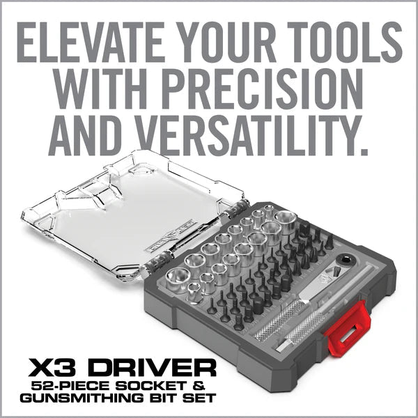 Engineered with precision and practicality in mind, the X3 Driver 52-Piece Socket & Gunsmithing Bit Set is built to meet the demands of professionals and enthusiasts. Its versatility, durability and attention to detail make it a reliable addition to any toolkit. From detailed gunsmithing tasks to general repairs, this set provides the tools necessary for accurate and efficient performance.