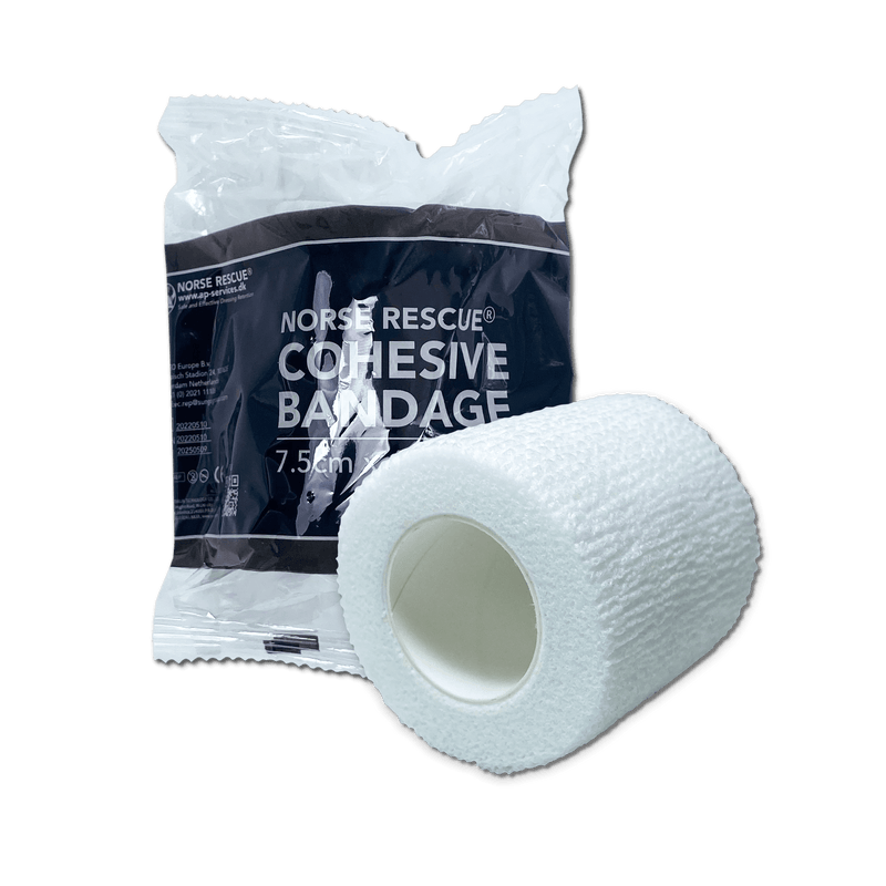 NORSE RESCUE® Cohesive Bandage is an airy bandage with a double adhesive effect, so the bandage sticks to itself and not to the skin. This ensures a fast and easy