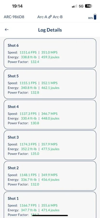 - Live Data Display: View shot velocity, standard deviation, power factor and more, instantly displayed on your device.