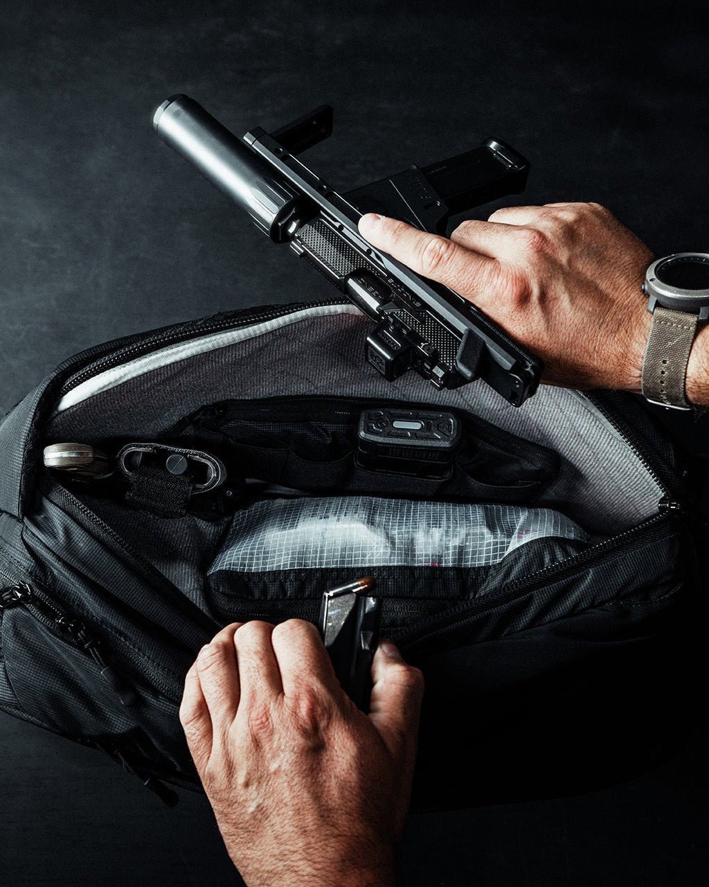 Fade Transport ligner på en helt vanlig ryggsekk når det gjelder utseende, men de godt gjennomtenkte innvendige funksjonene gjør den helt unik. Med diskret merkevarebruk, innvendig fôr for borrelåsmontering og en robust konstruksjon spesielt utviklet for våpen, gir Fade Transport deg muligheten til å skape et system som er skreddersydd for dine behov.
