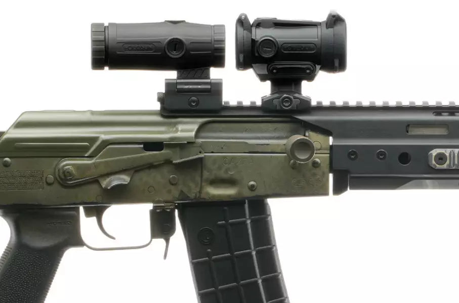 ARO-EVO is the ARO (Advanced Rifle Optic) EVOlved. ARO-EVO features an all-new 26mm housing design that offers a larger sight picture providing the user with more information for improved performance shooting along with our new lower 1/3 co-witness pedestal mount. The newly designed housing mates perfectly with Holosun magnifier series and includes a new lens cap and anti-reflection device system. Additionally, ARO-EVO is available with Holosuns new Special Purpose Reticle (SPR) which is a bullet-drop compensating and ranging reticle which balances the performance of a 2MOA dot with accuracy at intermediate distances. ARO-EVO is available with the Holosun Special Purpose Reticle or a 2MOA dot only in Red, Green, and Gold.