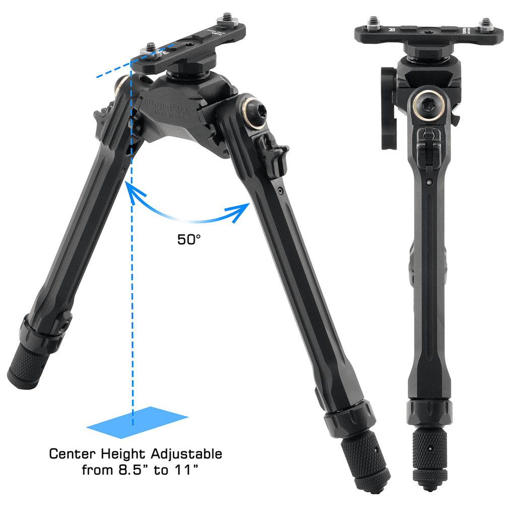 UTG PRO® TBNR® Bipod with adjustable center height from 21.6 to 28 cm (8.5–11") center height and M-LOK mount.