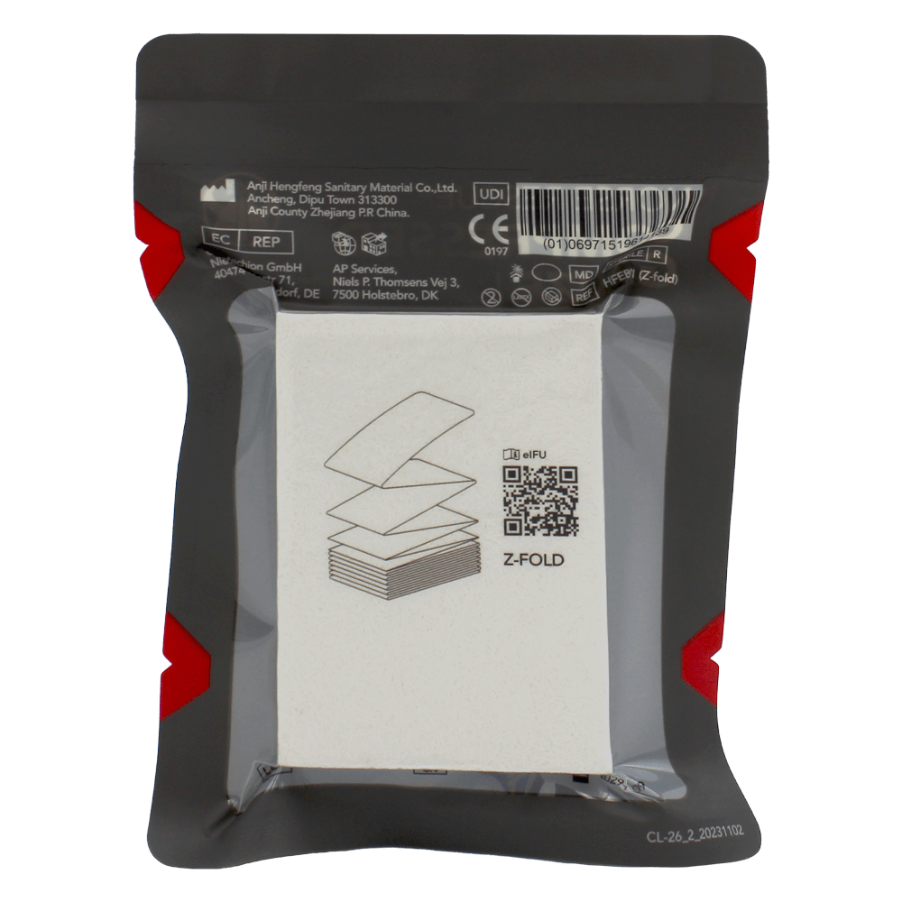 NORSE RESCUE® Komprimert Stappebandasje i Z-fold er laget av høykvalitets bomull for maksimal absorpsjon og stabilitet.