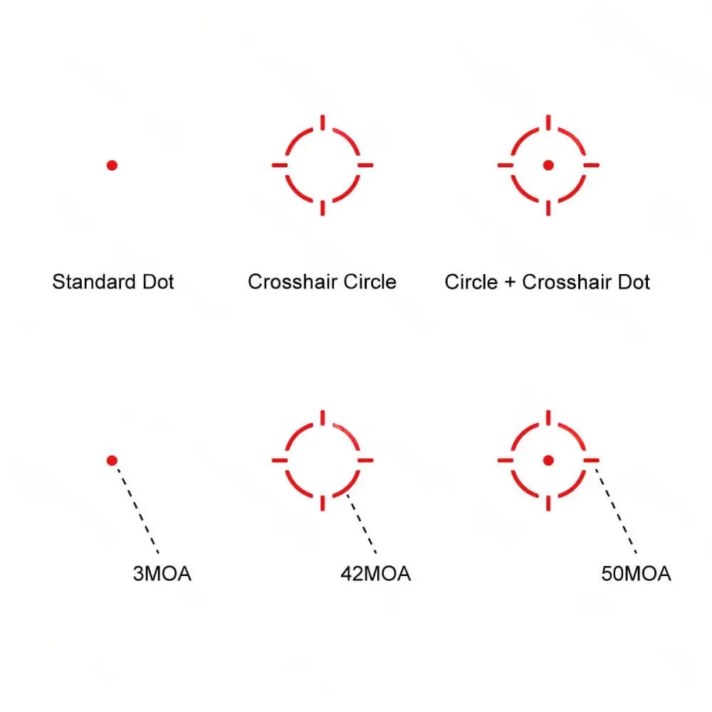 - Multi-reticle design: 3MOA dot, 40MOA circle, and circle with dot
