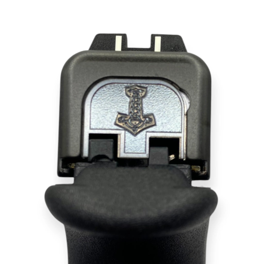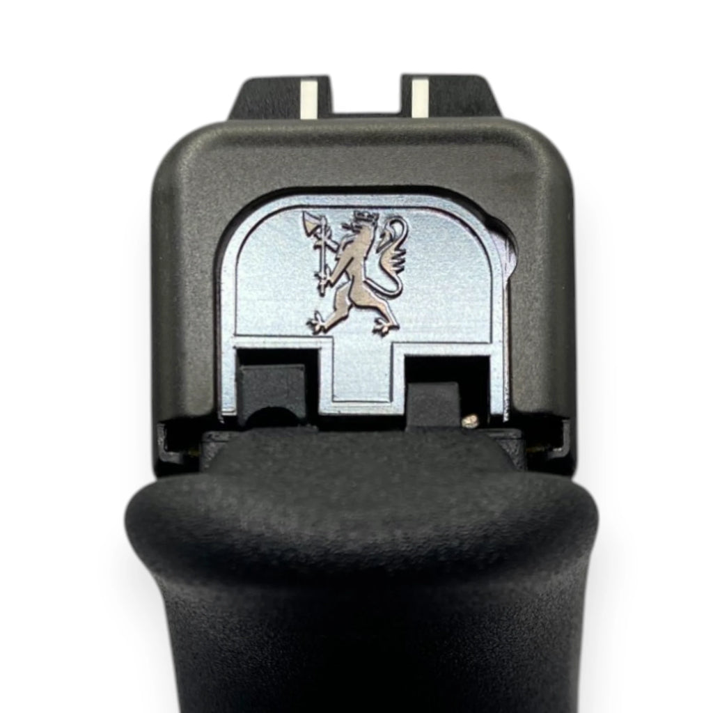 Gi din Glock et unikt preg med en av disse høykvalitets bakplatene i titan. Overflaten er anodisert for økt holdbarhet og lasergravert for et stilrent design.