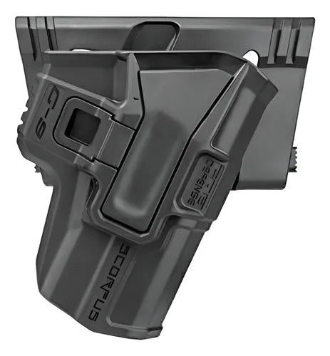Scorpus M24 er et robust pistolhylster fra FAB Defense, designet for sikker bæring og hurtig trekk. Hylsteret er originalt designet for et sikkerhetsbyrå med behov for et smidig hylster som gir raskt trekk fra både stående og sittende stilling. Hylsteret er tilgjengelig med Level 1 eller Level 2 retensjon, og har en fast vinkel (cant) på 24 grader.