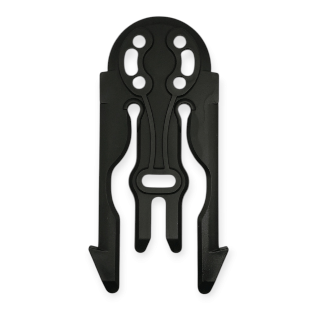 Molle Attachment plate for the Quick Locking System (QLS). This molle adapter can be attached directly to holsters or on the back of a QLS Receiving mount, adding functionality to your QLS setup.