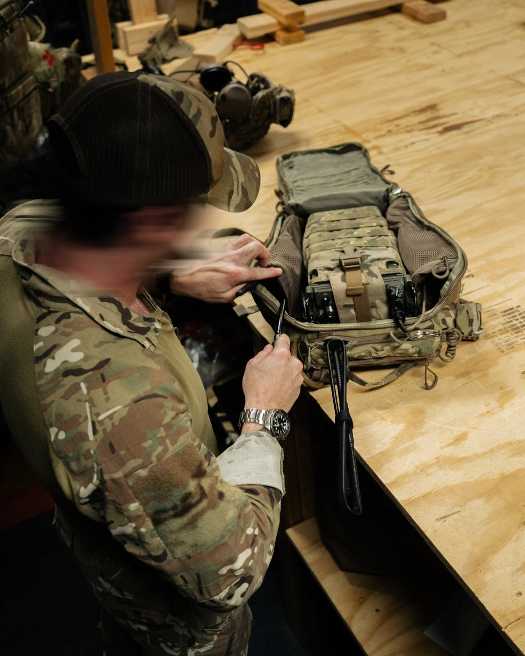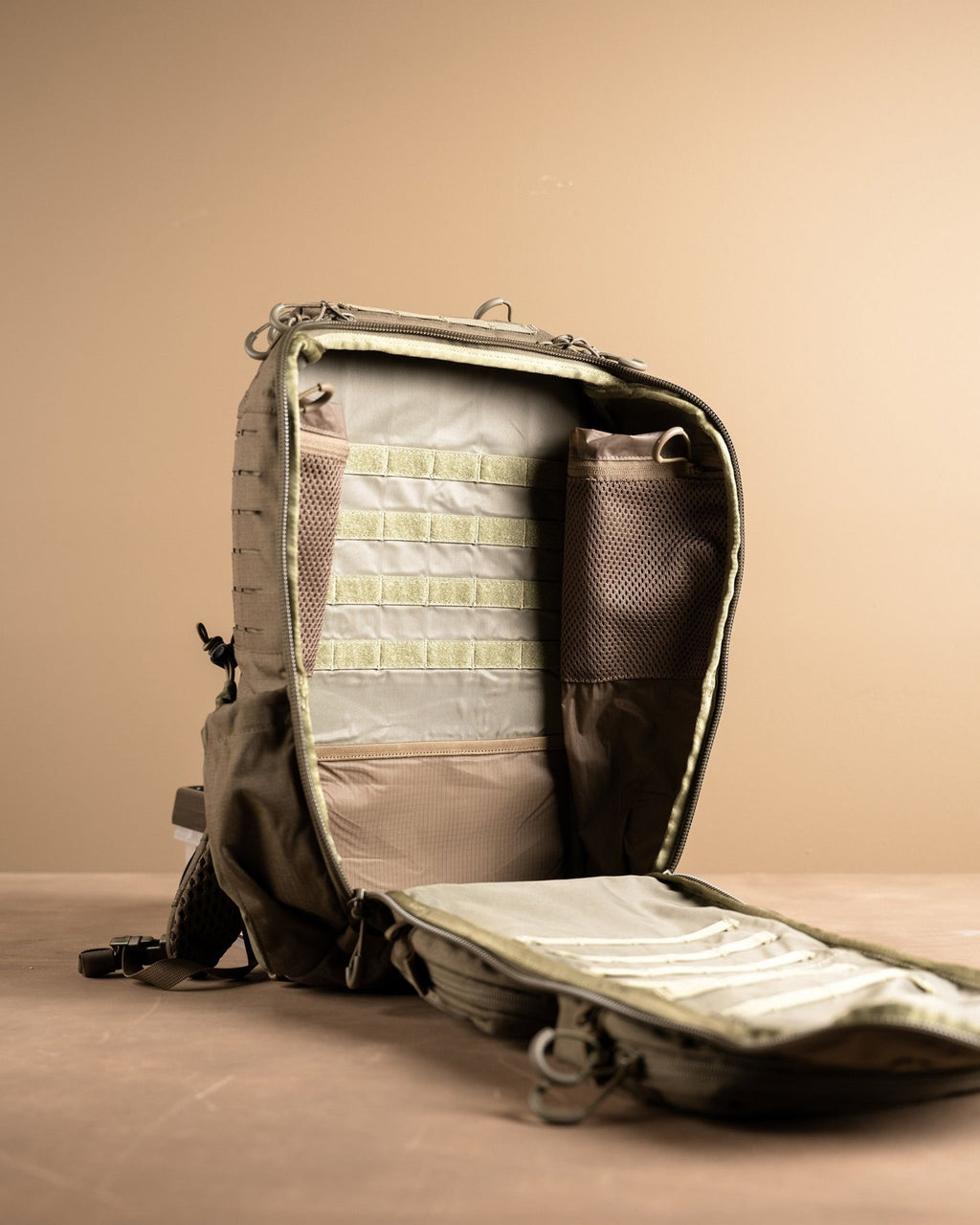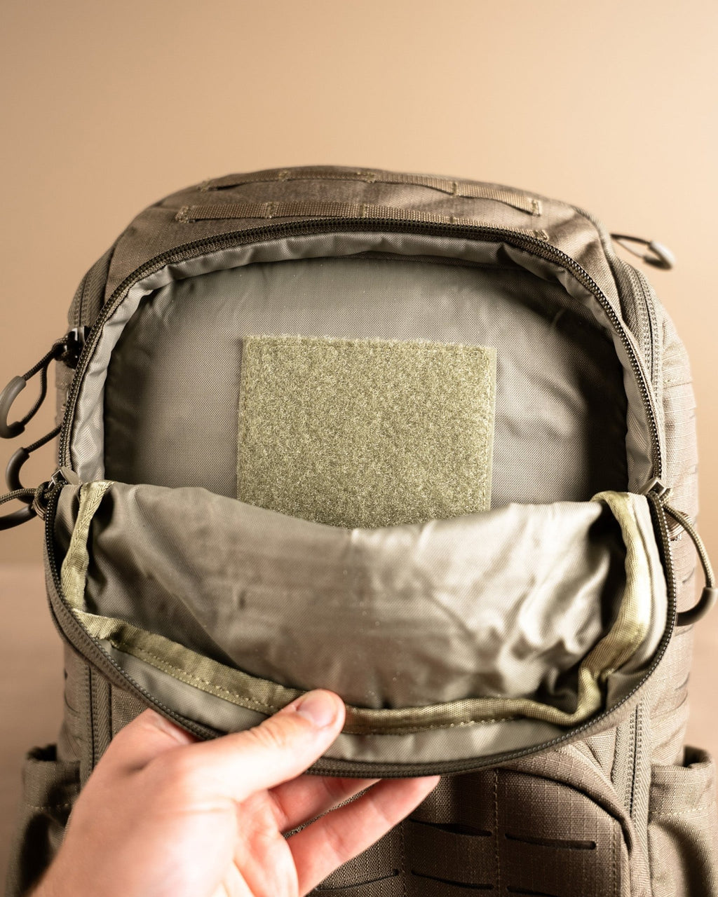 On the pack's exterior, you'll find two zippered organizational pockets. The top pocket is perfect for grab-and-go essentials, and the bottom has padding for NODs or hearing protection.