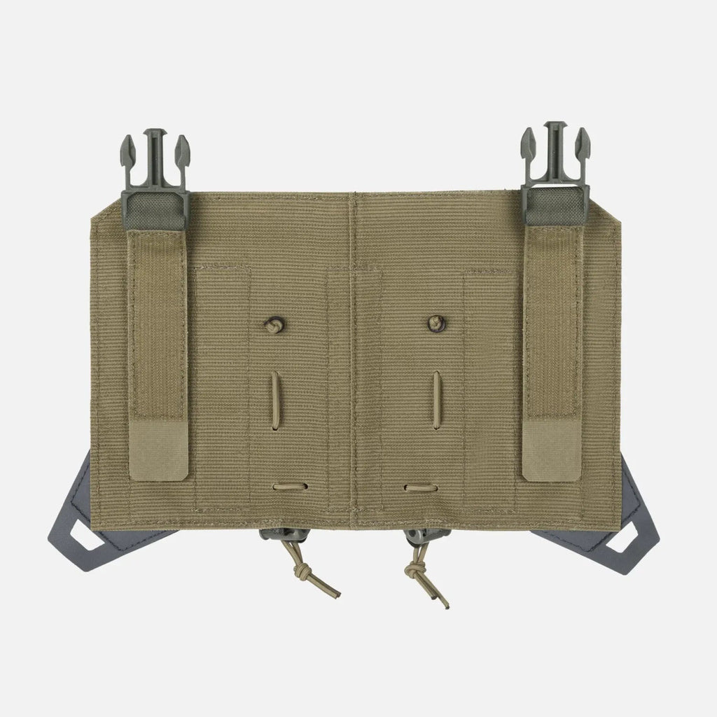TRIPLE RIFLE MAGAZINE FLAP er en ekstra klaff for SPITFIRE® platebærer systemet fra Direct Action. En justerbar lomme sydd direkte på klaffens overflate gir deg ekstra bærekapasitet for tre riflemagasiner for enten AR, AK eller SR plattformer. Magasinene er sikret på toppen med elastiske snorer med sklisikre Hypalon®-trekkere. Klaffen er nesten gjennomgående produsert i et proprietært laminat som ikke bare garanterer holdbarhet, men som også er litt stivere enn standard Cordura®, slik at du enkelt kan sette magasinene tilbake i lommen. Forsiden av klaffen er dekket med laserskåret MOLLE/PALS panel for ekstra modularitet.