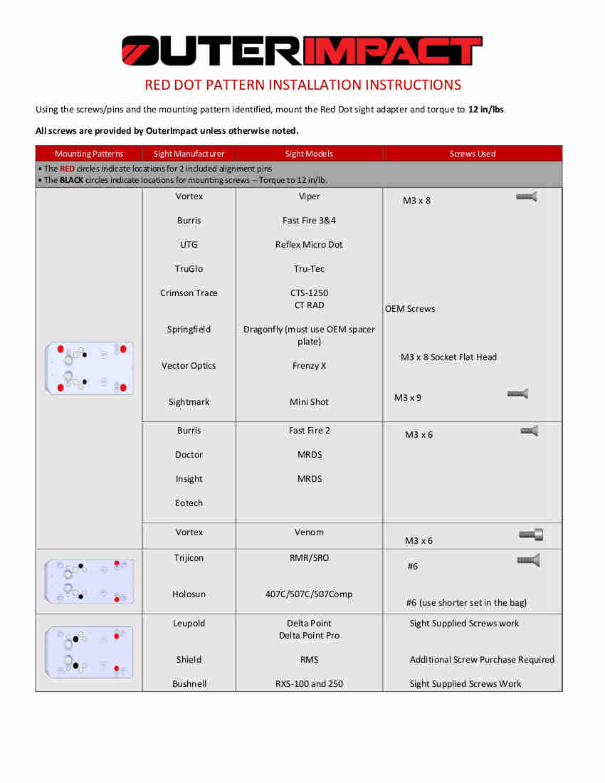 • Holosun 507C/407C V2 and X2 versions -K models require the Micro adapter- (screws included in OuterImpact Screw Pack)
