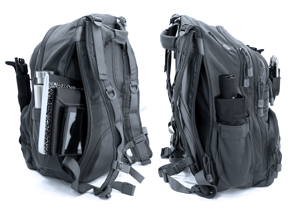 Robust og gjennomtenkt 28-liters ryggsekk i mørk gun metal farge, konstruert i slitesterkt 600D nylon med forsterket søm for ekstra holdbarhet. Utviklet for å gi optimal organisering, komfort ved lengre bruk og mulighet for modulær tilpasning.