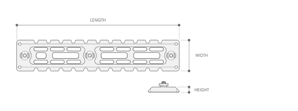 - M-LOK® Interface Spaced for Installation in Complete Slots or in Between Adjacent Slots