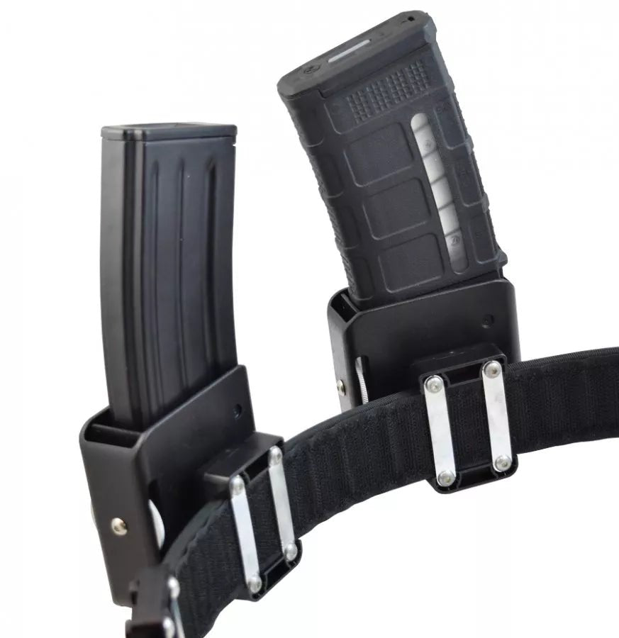 AR-15 Racer Pouch leveres med DAA sitt Alpha Rail System for montering på beltet. Med Alpha Rail System kan du justere tilt på lommen og enkelt fjerne AR-15 lommen og bytte den ut med en lomme for pistol magasiner eller haglepatroner.